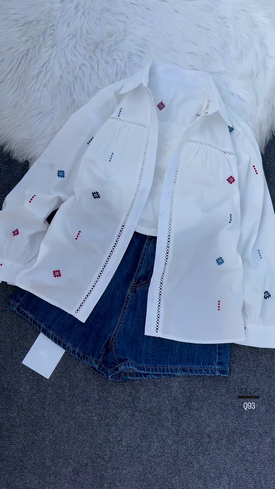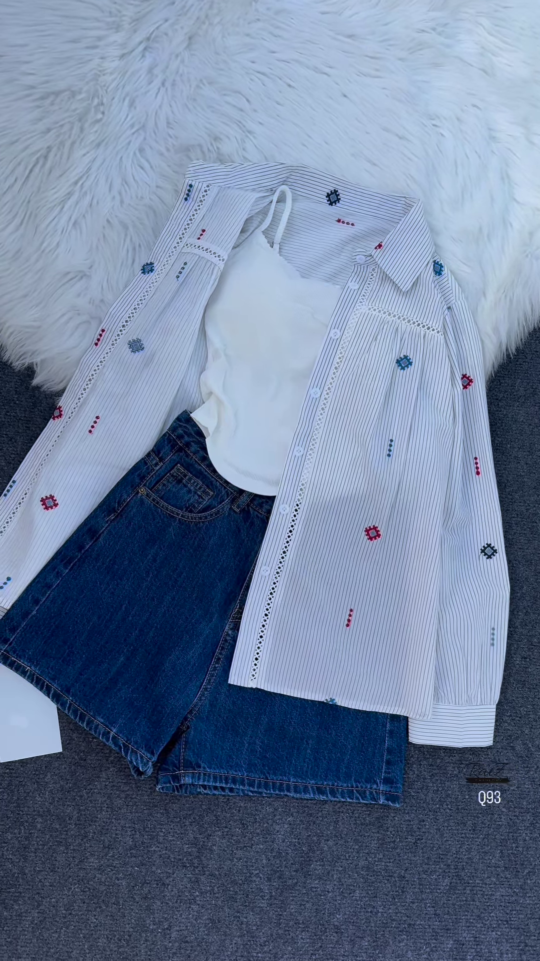 Boho Chic Embroidered Shirt with Denim Shorts – Summer Street Style