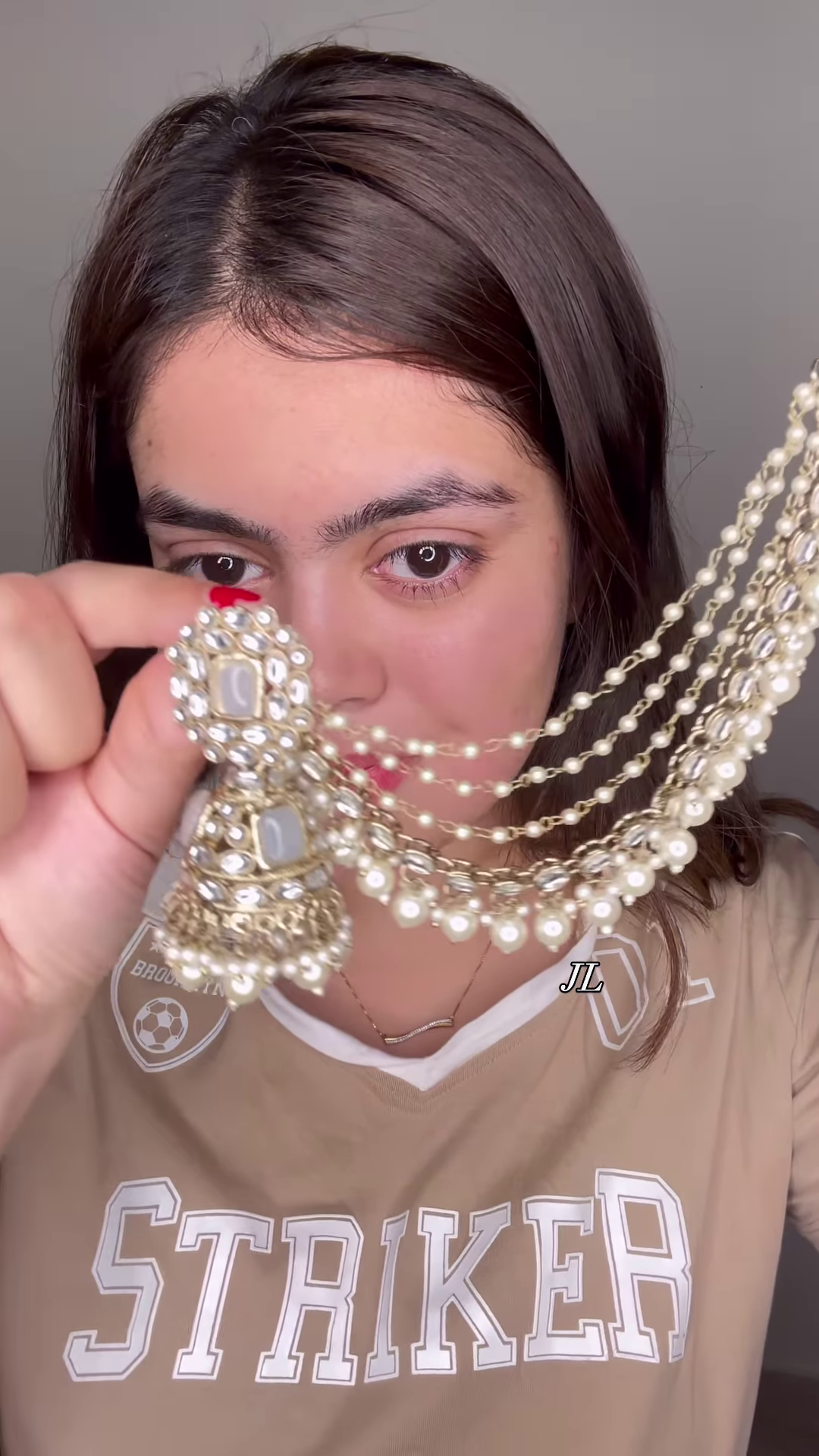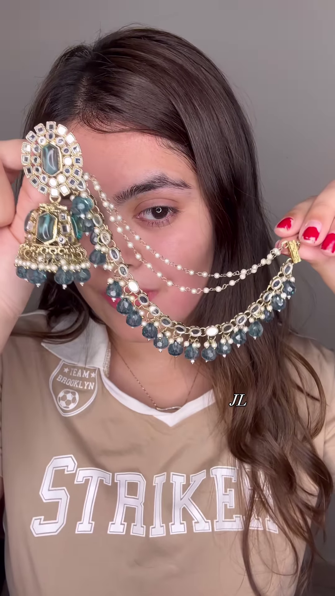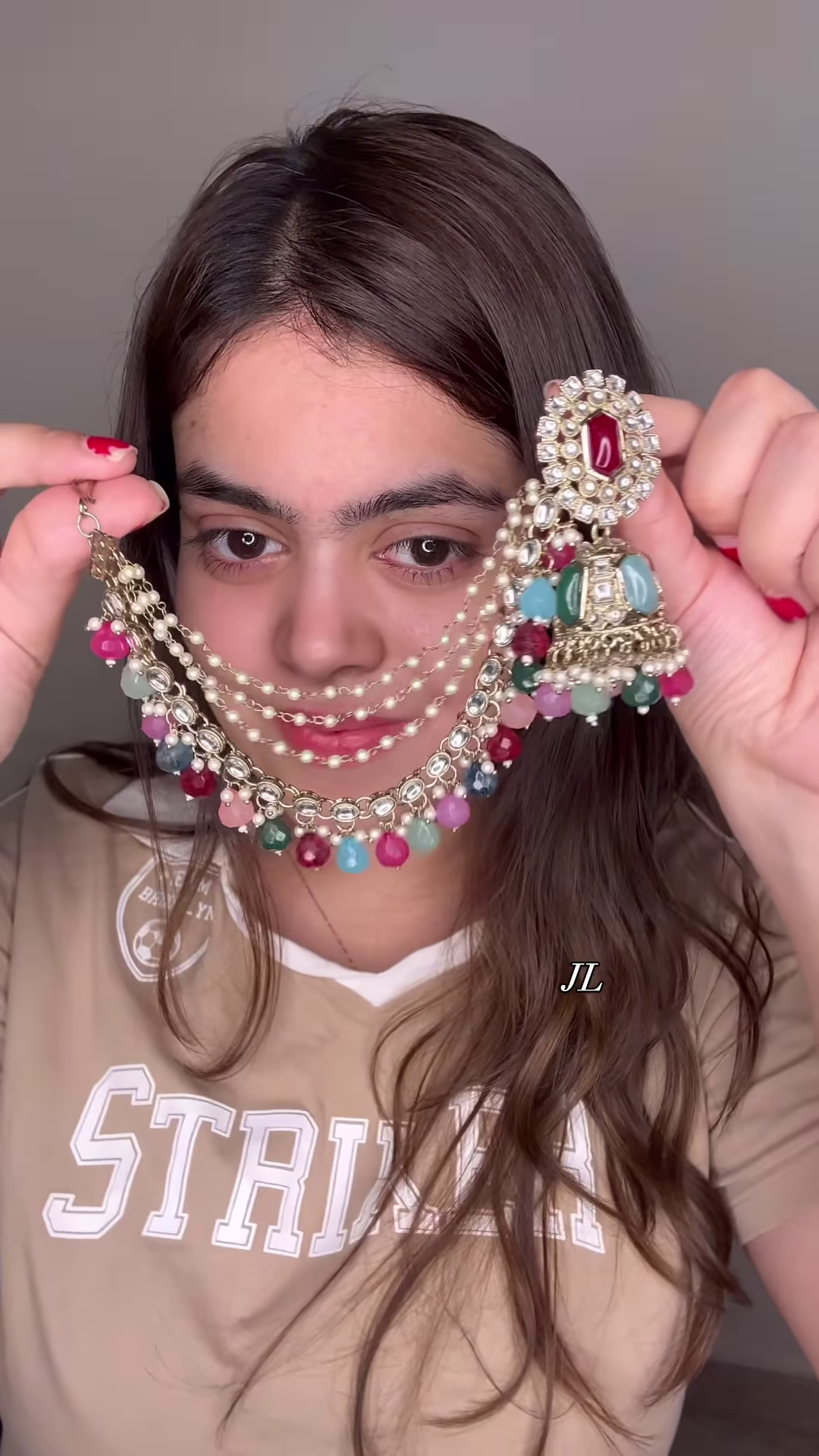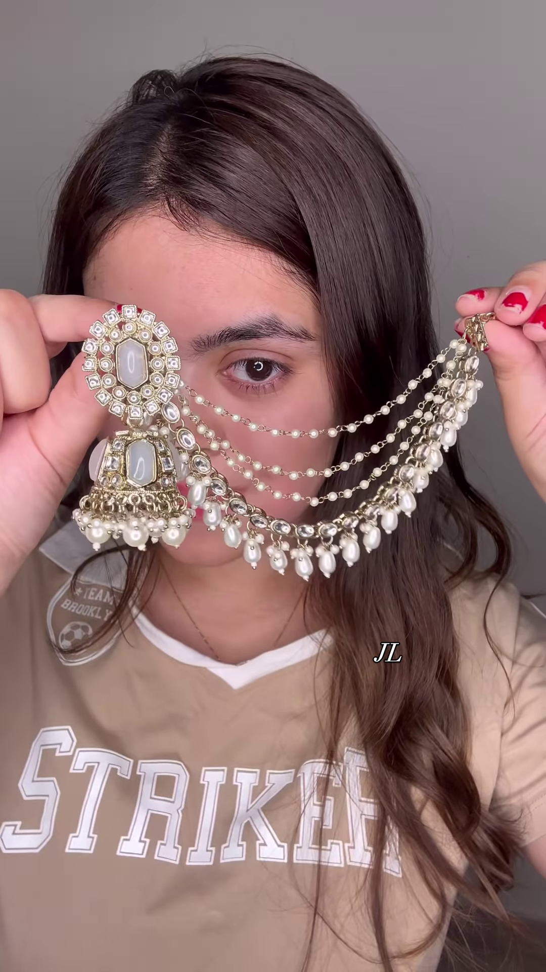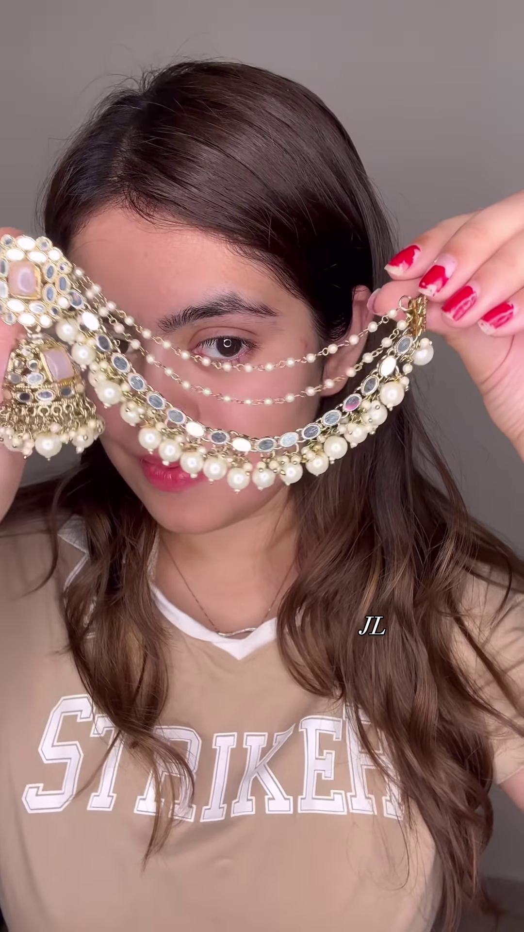 These ornate Jhumka earrings with a multi-chain pearl earchain are designed to make a statement. They pair beautifully with traditional Indian attire such as sarees, lehengas, and Anarkali suits, adding a touch of majestic beauty and cultural richness to your ensemble.