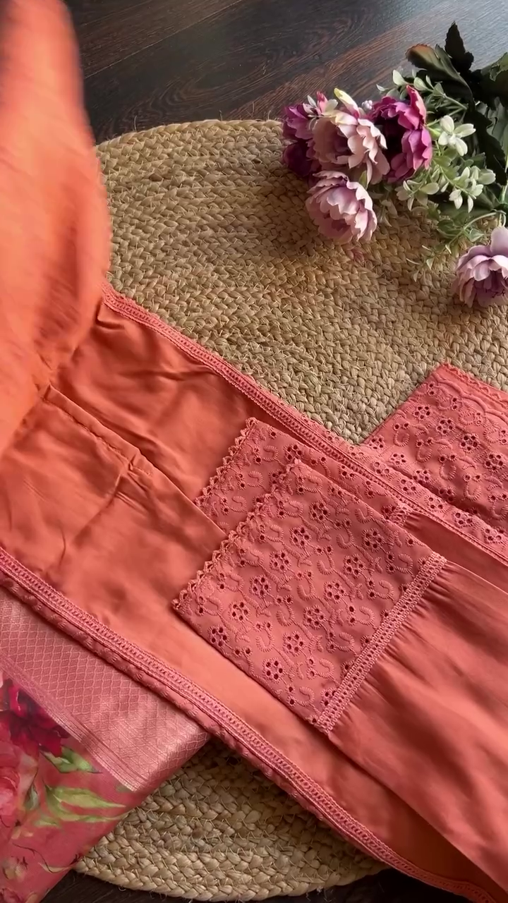 Floral Printed Round Neck Three-Quarter Sleeves Kurta with Palazzos